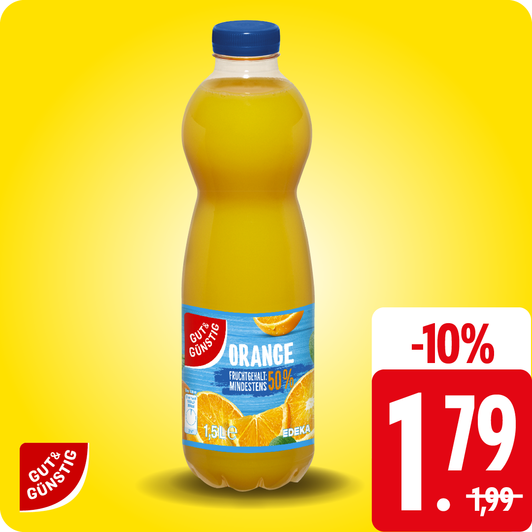 Mindestens 50% Fruchtgehalt, 1,5 l Flasche, 1l = € 1,19