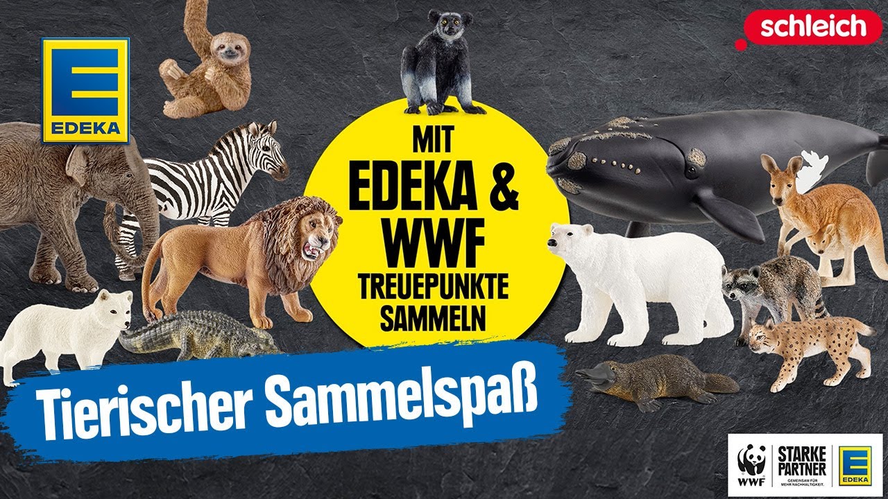 Gemeinsam mit EDEKA und WWF hat schleich® die bunte Wild-Life-Kollektion für die diesjährige Sammelaktion zusammengestellt. Vom 26.08. bis zum 19.10.2024 erhalten Sie pro 5 € Einkaufswert einen Treuepunkt. Mit 5 Treuepunkten bekommen Sie ein schleich®-Tier Ihrer Wahl für nur 3,79 € (UVP)*.
