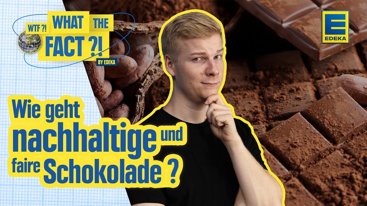 Neun Kilogramm Schokolade isst eine Person in Deutschland pro Jahr. Damit sind wir hinter den USA das Land mit dem zweithöchsten Konsum weltweit. In diesem Video von „What the Fact?! By EDEKA gibt Cedric von Doktor Whatson einen Überblick über den Herstellungsprozess von Schokolade und erklärt die negativen Folgen des Anbaus. Monokulturen ruinieren den Boden und zwingen die Produzenten dazu, immer mehr Regenwald abzuholzen, um neue Anbauflächen zu haben. Dagegen will sich das Cocoa for Future Programm einsetzen und einen nachhaltigen, klimaresistenten Kakaoanbau schaffen. Es unterstützt die Bauern bei einem nachhaltigen Anbau mit Biodiversität und Ressourcenschutz und schafft Lebens- und Arbeitsbedingungen, von denen die ganze Familie der Arbeiter profitiert.