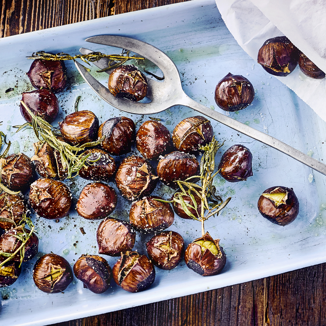 Natürlich verraten wir dir in unseren Esskastanien-Rezepten auch, wie du den Klassiker vom Weihnachtsmarkt zu Hause zubereiten kannst. In unserem Rezept für geröstete Maronen bekommt der wärmende Snack durch Rosmarin und Muskatnuss auch noch eine außergewöhnliche Geschmacksnote hinzu.
