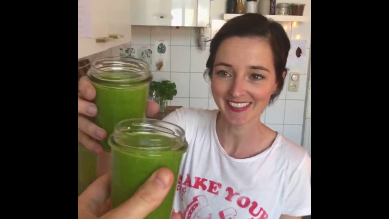 Gurke, Apfel, Sellerie, Spinat, Zitrone, Orangen und Ingwer - daraus zaubert Julia einen köstlichen Immun-Boost-Smoothie! Ein bisschen schnibbeln, ab in den Mixer, fertig.