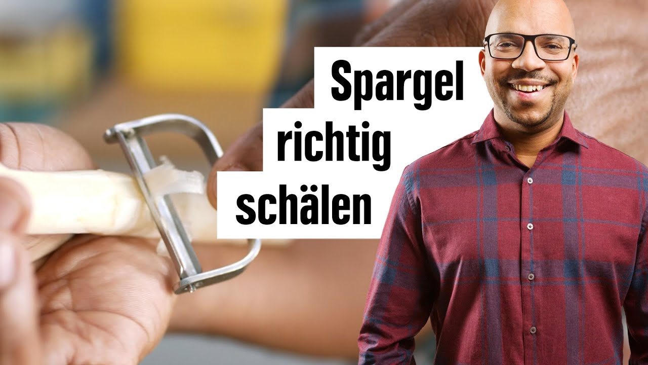 Im nächsten Schritt folgt stets das sorgfältige Schälen des Gemüses. Denn: Selbst feinste Schalenreste oder holzige Stellen trüben den kulinarischen Genuss. Achten Sie hier darauf, das Gemüse stets von oben (dem Spargelkopf) nach unten (dem Schnittende) zu schälen.