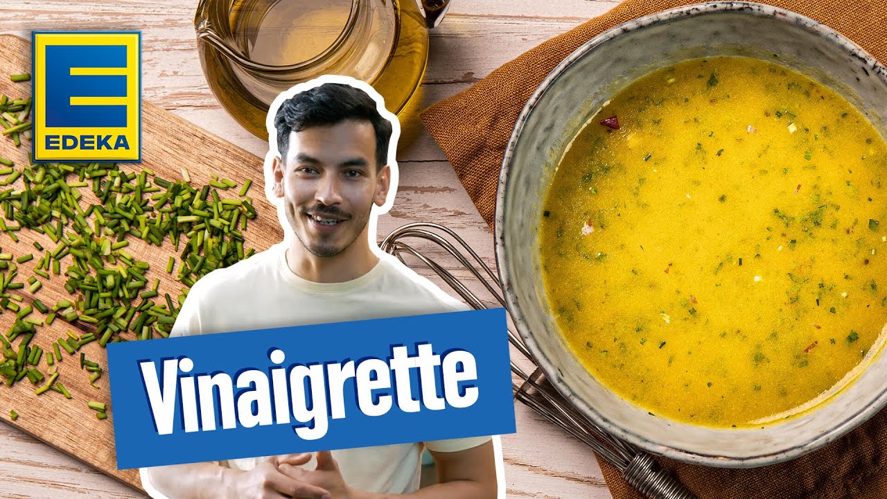 Vinaigrette ist eine Soße aus Essig, Öl, Salz und Pfeffer. Das Wort stammt vom französischen "vinaigre", was übersetzt Essig bedeutet. Im Grundrezept kommen auf einen Esslöffel Essig zwei bis drei Esslöffel Öl. Kräuter-Senf-Vinaigrette ist die raffinierte Variante des beliebten Klassikers. Für eine Kräuter-Vinaigrette rühren Sie einfach mild-würzigen Dijonsenf, Schalottenwürfel, Honig, Salz, Pfeffer und feingehackte Kräuter unter den Essig. Öl untermischen – fertig! Kräuter-Vinaigrette ist für Blattsalate, gemischte Salate und Bowls perfekt. Kräuter-Senf-Vinaigrette ist dagegen mehr als eine Salatsoße. Es lohnt sich, sie zu Gemüse, zum Beispiel zu Spargel, zu probieren. Zu gebratenem oder gegrilltem Fleisch und Fisch ist sie ebenfalls eine köstliche Abwechslung.
