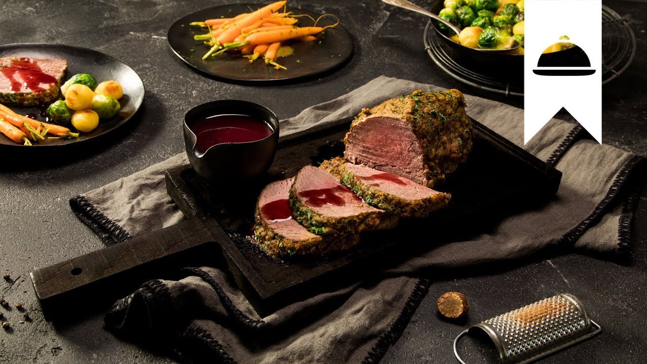 Unser saftiger Weihnachtsbraten mit Kräuterkruste, leckeren Beilagen und einer fruchtigen Sauce sorgt für ein kulinarisches Highlight auf ihrer Festtagstafel – und ist in nur 45 Minuten zubereitet.