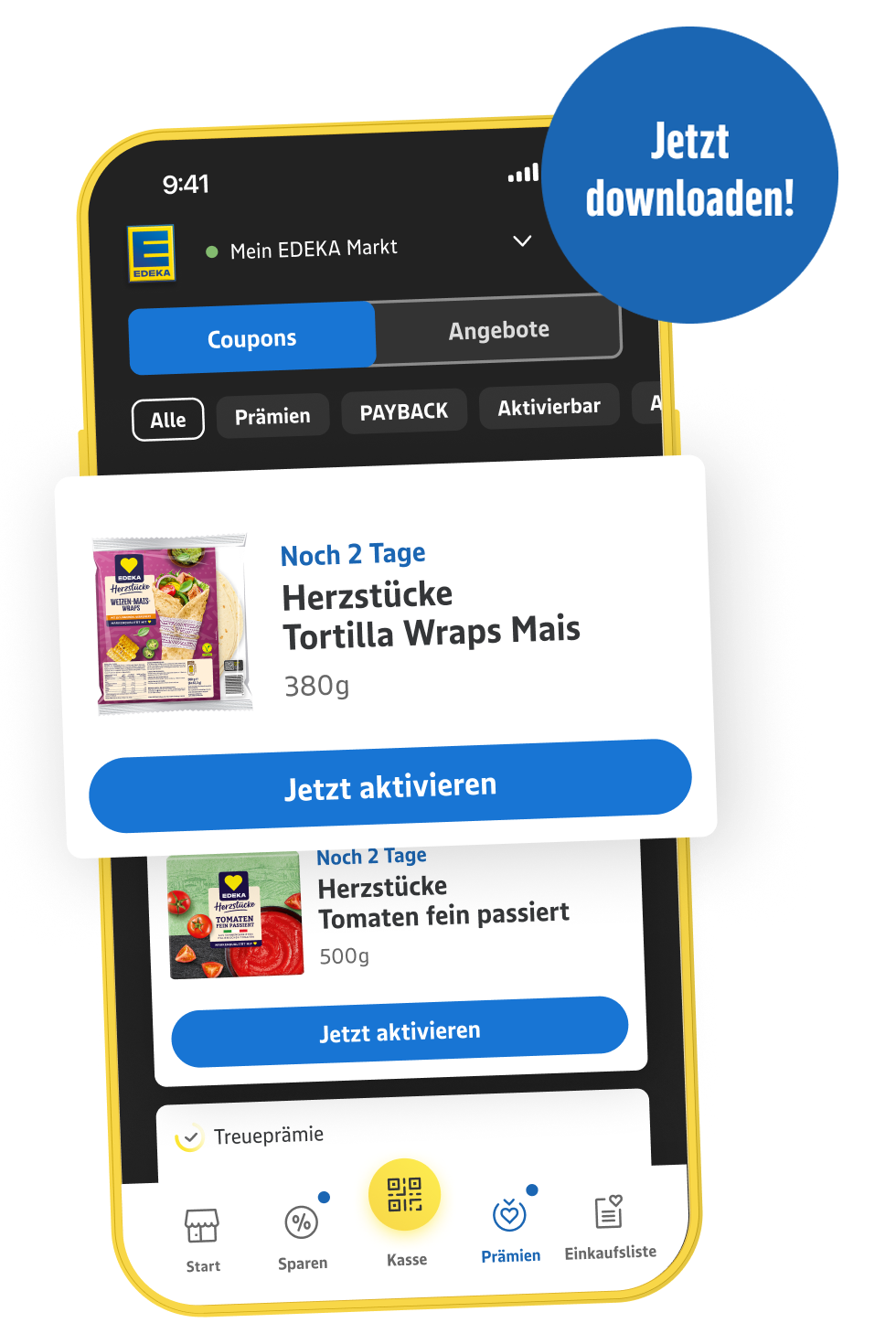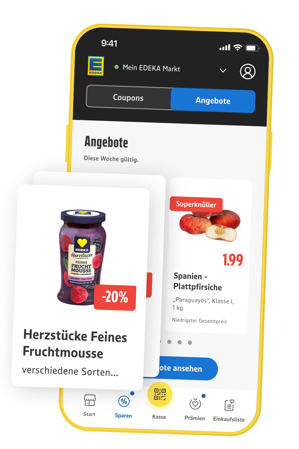 Mit der EDEKA App bekommst du jede Woche exklusive Rabatte, die du ganz bequem in deinem teilnehmenden Lieblingsmarkt einlösen kannst.