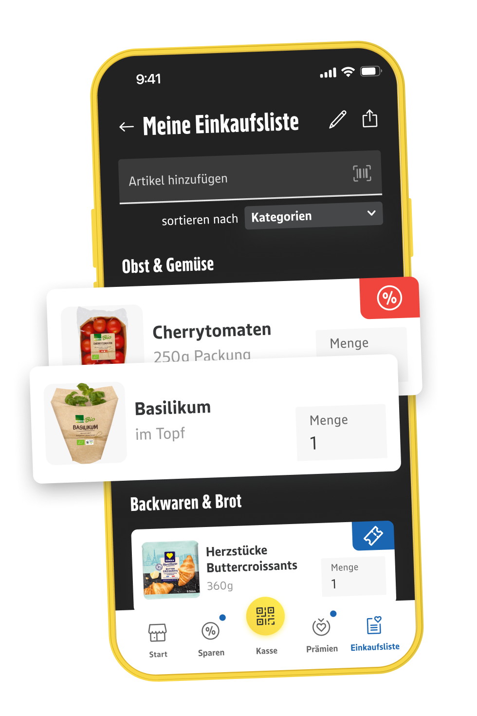 Füge einfach deine Lieblingsprodukte hinzu und entdecke dabei aktuelle Angebote. Die Liste ist sogar dein intelligenter Einkaufshelfer: Sie sortiert alle Artikel automatisch nach Warenwelt – so findest du alles schneller im Markt.