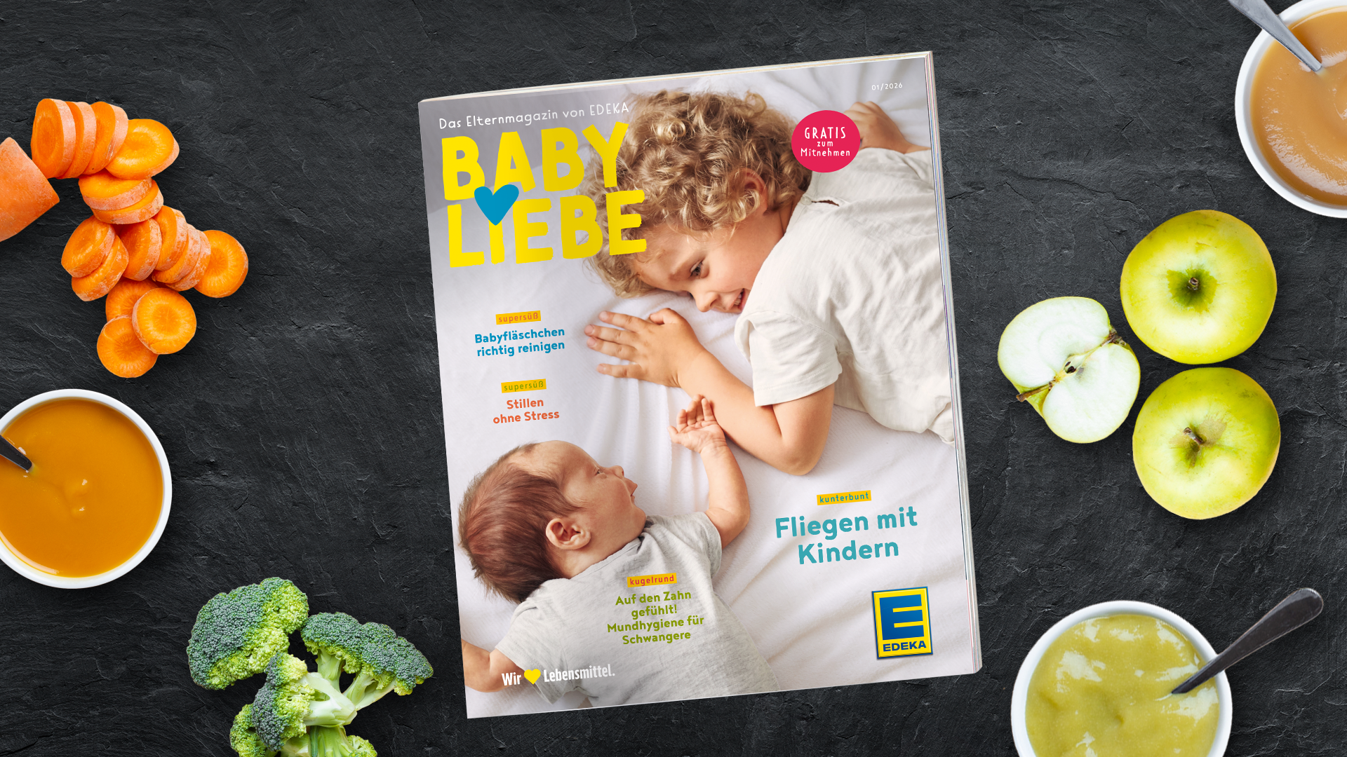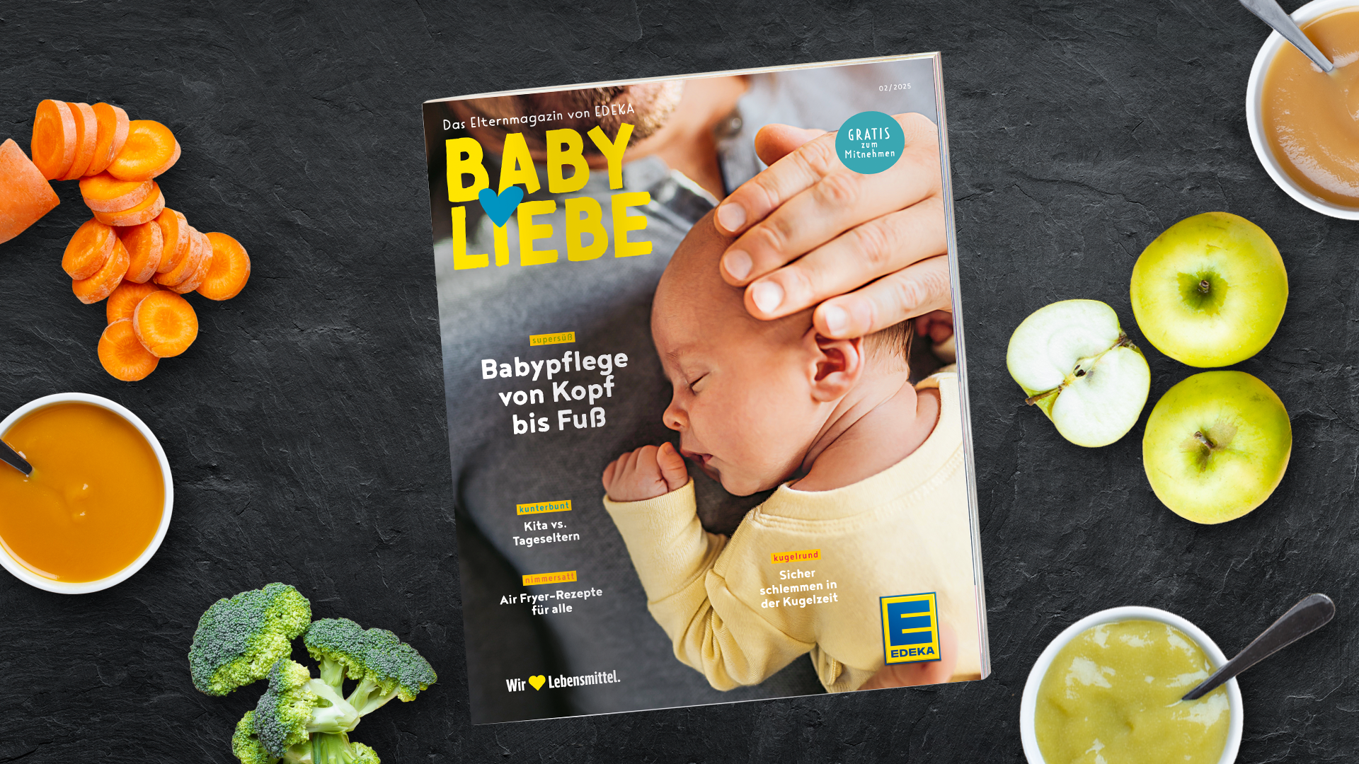 All das und noch viel mehr im BABYLIEBE-Magazin – gratis in allen teilnehmenden EDEKA-Märkten.