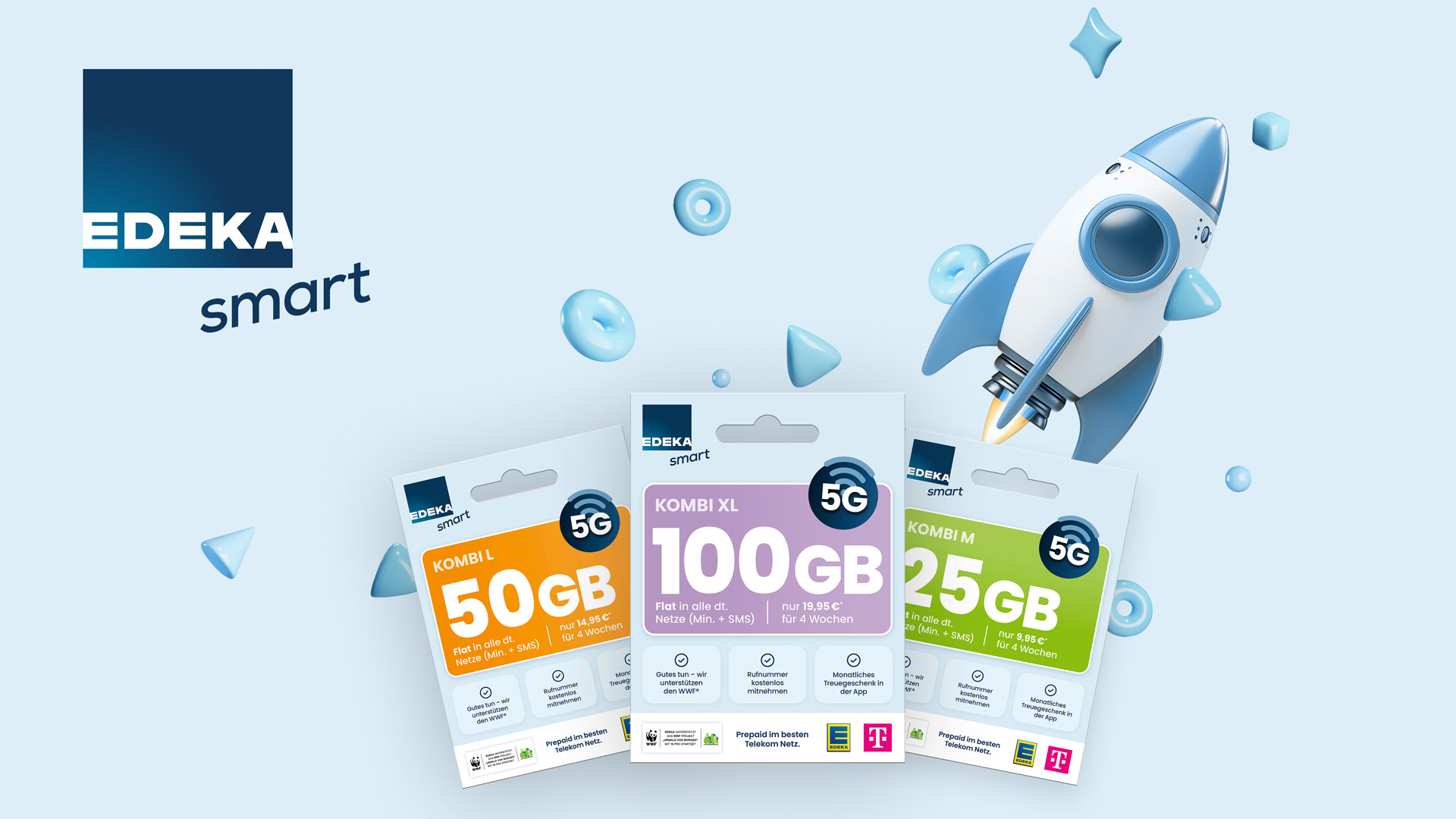 Bei uns kannst du dich auf beste D-Netzqualität und volle Kostenkontrolle ganz ohne Vertragsbindung freuen! Unsere Mobilfunktarife EDEKA smart gibt es für jeden Anspruch: Für Wenig- und Vieltelefonierer, Dauersurfer und Alle-Kanäle-Nutzer. Deinen Tarif und dein Guthaben verwaltest du einfach online – oder du lädst deine Karte direkt in einem unserer Märkte auf. Und wenn du Hilfe brauchst oder Fragen hast, ist unsere kostenlose Kundenhotline jeden Tag von 7 bis 23 Uhr für dich da. Denn wir setzen für unsere Kunden auf Spitzenservice und maximale Erreichbarkeit.