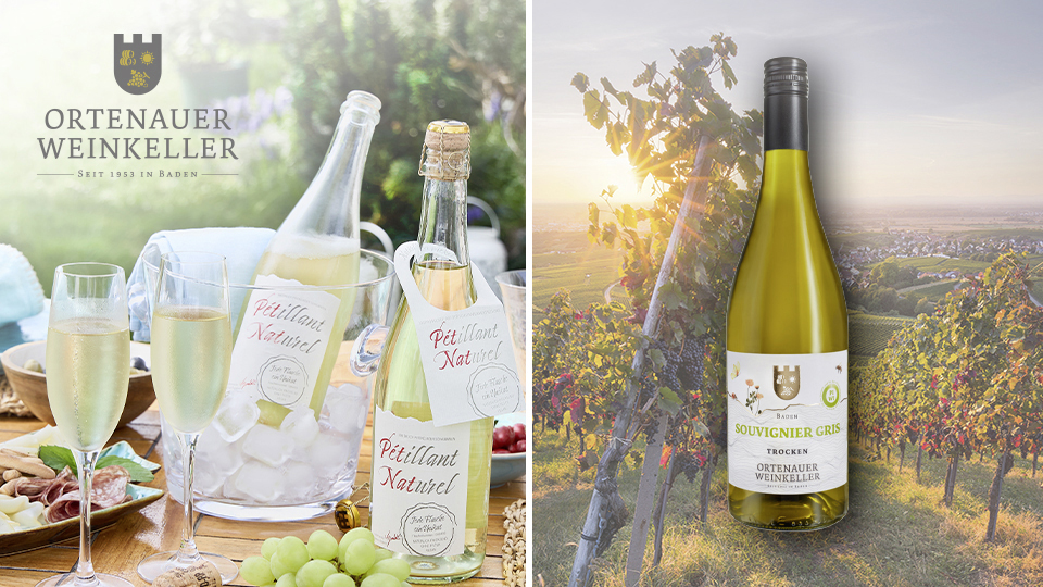 Nicht alle Weine sind vegan. Denn bei der Herstellung können Hilfsmittel wie Gelatine verwendet werden. Nicht so beim Schaumwein Muskateller Pét Nat und dem Souvignier Gris vom Ortenauer Weinkeller.