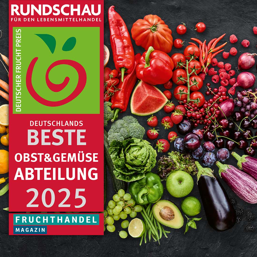 Bereits seit 1996 zeichnet das Fachmagazin „RUNDSCHAU für den Lebensmittelhandel" zusammen mit dem „FRUCHTHANDEL Magazin" die besten Obst- und Gemüseabteilungen aus. Eine Fachjury mit Expert:innen aus Handel, Industrie und Fachpresse bewertet die teilnehmenden Märkte anhand umfangreicher Kriterien wie Sortimentsvielfalt, Anteil regionaler Erzeugnisse, Warenpräsentation sowie Beratung in unangemeldeten Store-Checks vor Ort. Schirmherr des Preises ist das Bundesministerium für Ernährung, Landwirtschaft und Verbraucherschutz.